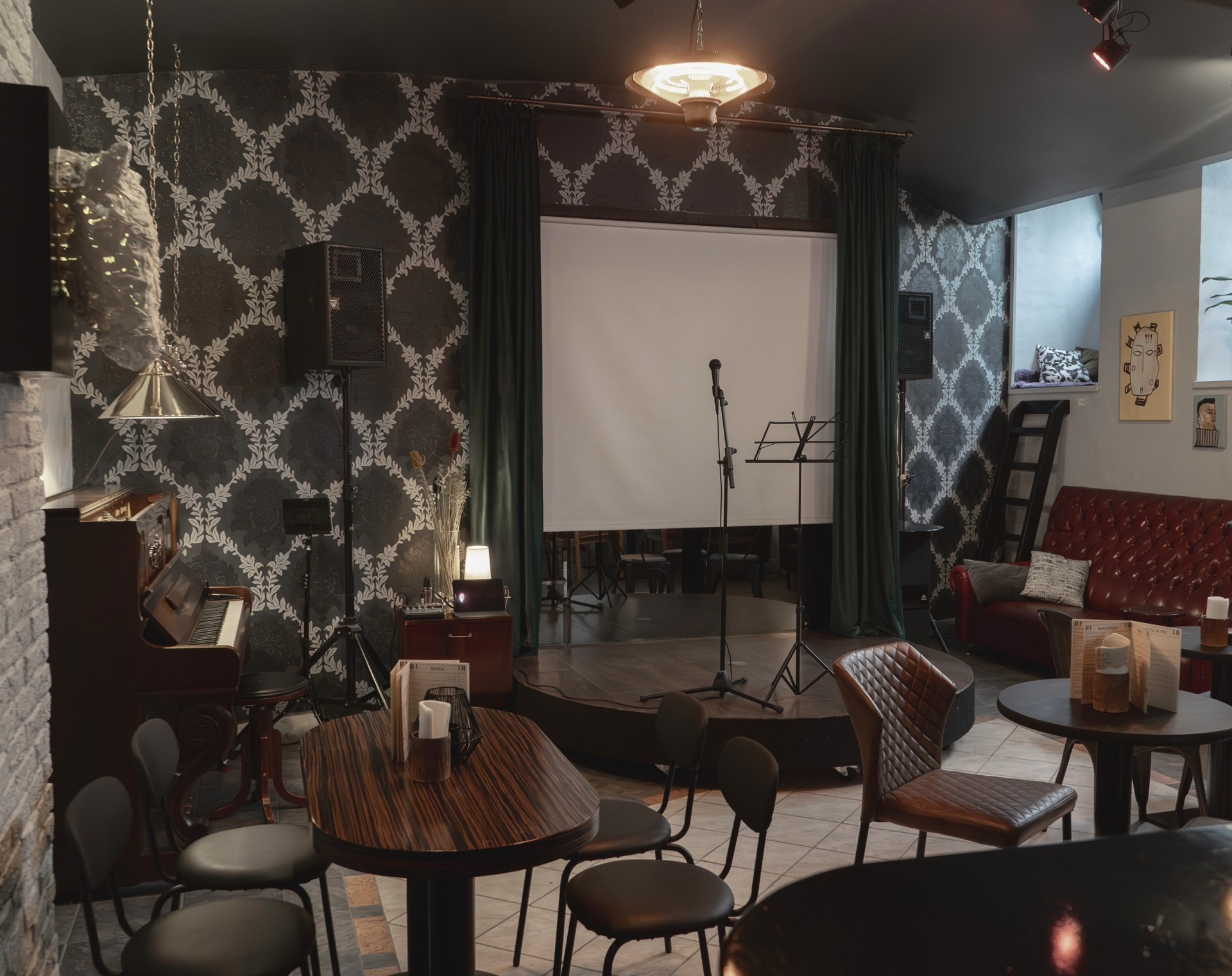 Equipment: Audio system, microphones, musical instruments, various lighting solutions, screen and projector, furniture, utensils;