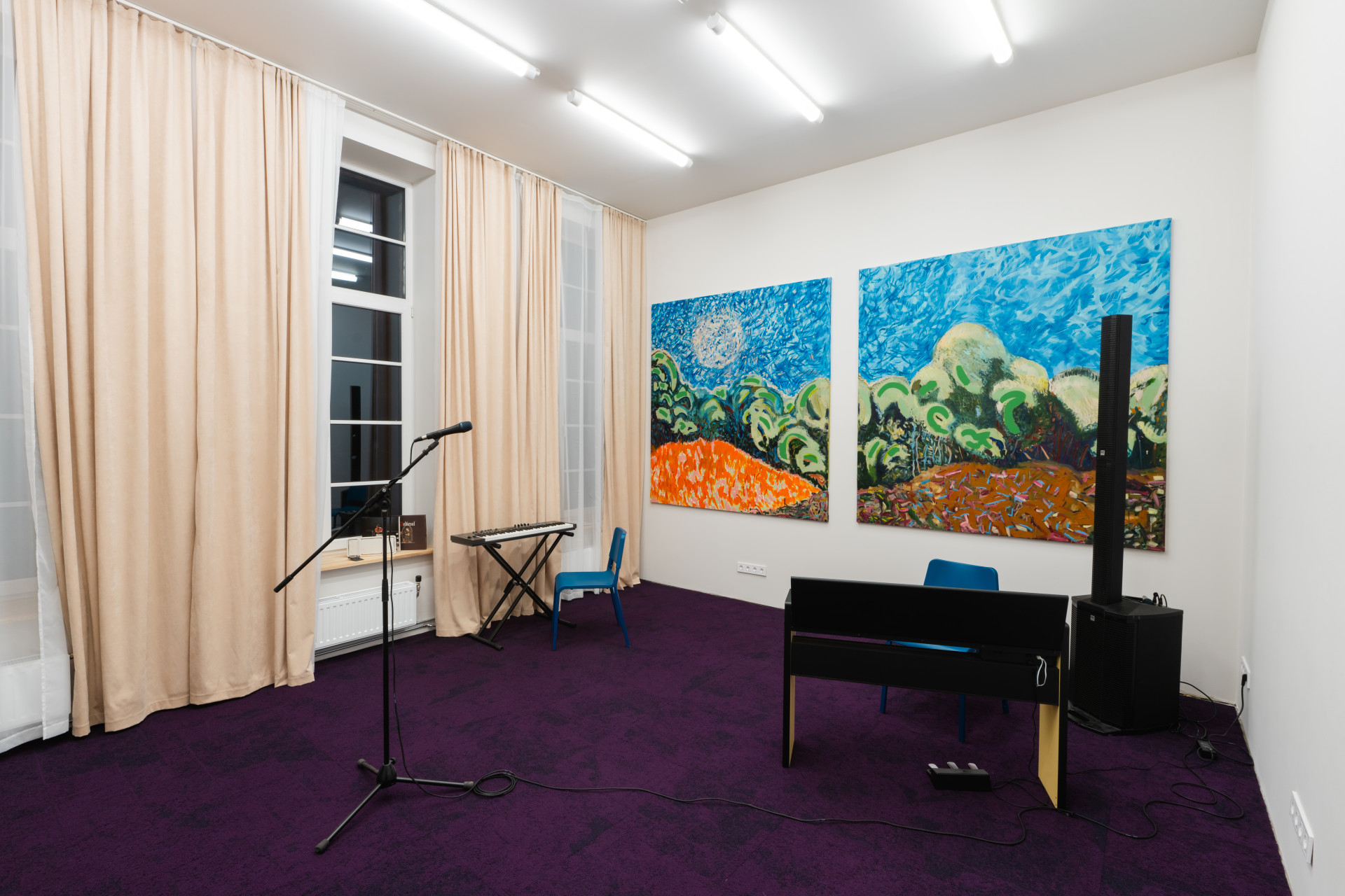 A 100-square-meter space suitable for up to 75 people, it is perfect for seminars, events, or other gatherings. It can also be transformed into a rehearsal room equipped with a modern in-ear monitor system and a large mirrored wall. |