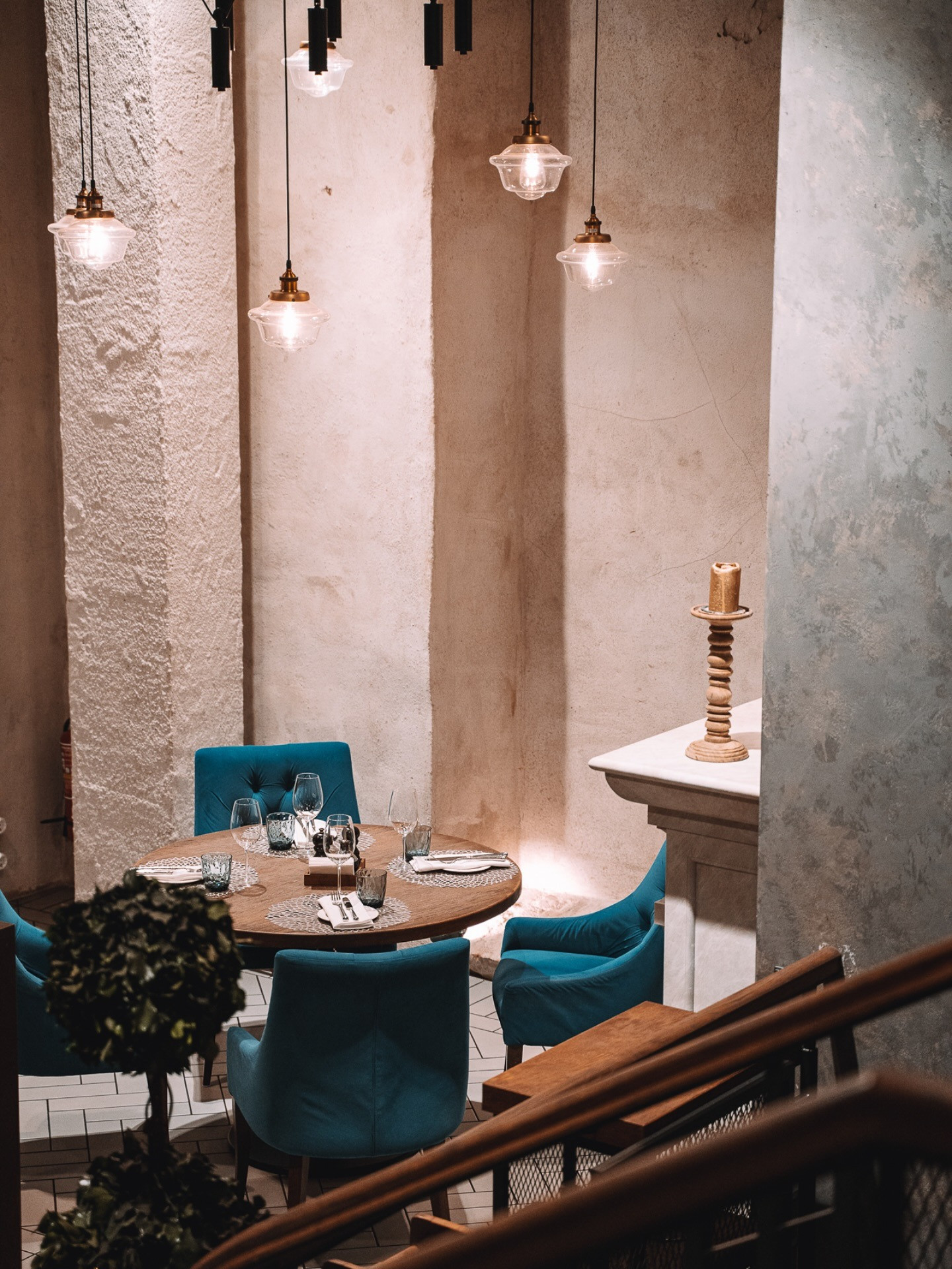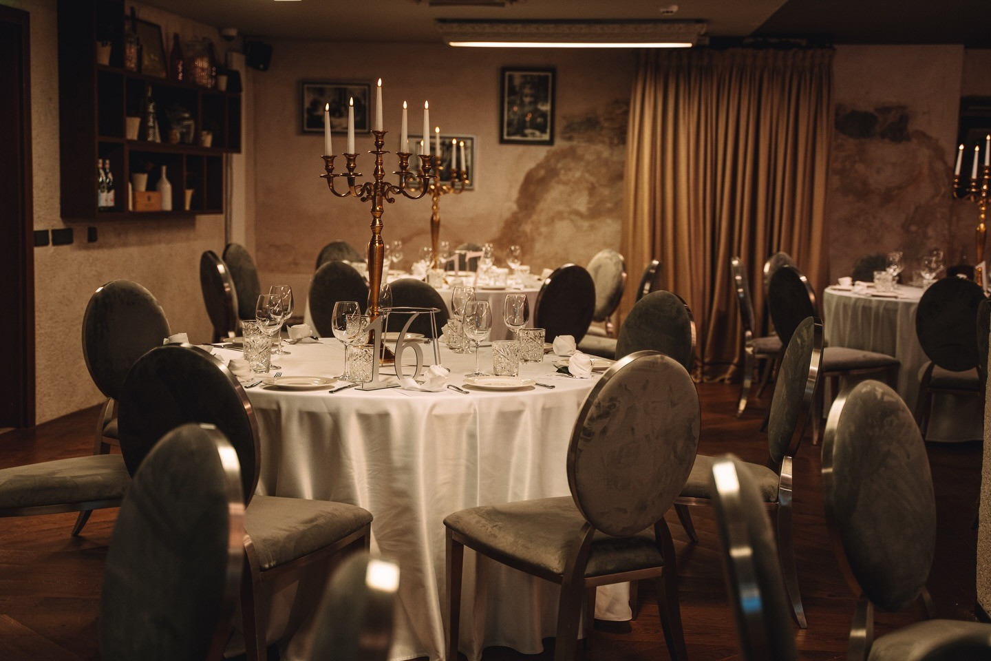 Restorāna interjers apvieno klasisku eleganci ar siltu un mājīgu noskaņu, radot vidi, kas piemērota gan svinīgiem, gan neformāliem pasākumiem. Telpas ir piemērotas dzimšanas dienām, jubilejām, kāzām, biznesa vakariņām, prezentācijām un citiem notikumiem.