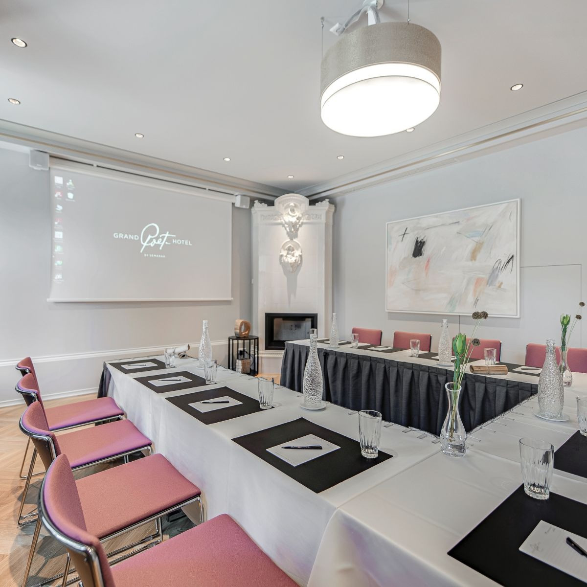 Современно оформленный со вкусом конференц-зал для небольших заседаний.