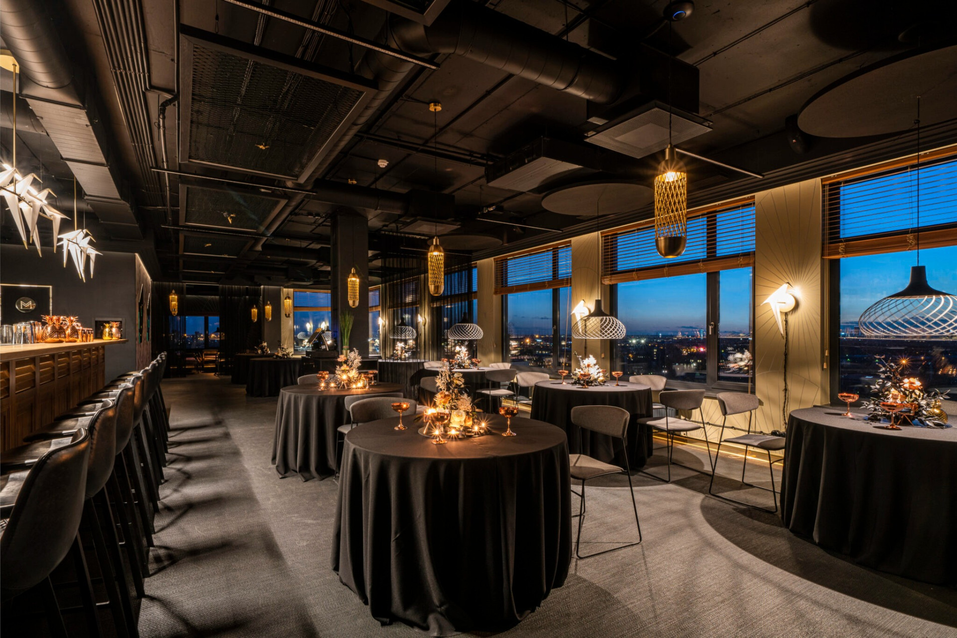 Уникальный дизайн в стиле ар-деко и закаты над Ригой создают утонченную атмосферу для мероприятий до 140 гостей. Отдельная VIP-зона и возможность организовать танцпол обеспечат незабываемые впечатления, а изысканный интерьер позволит легко добавить несколько акцентов под ваш праздник.