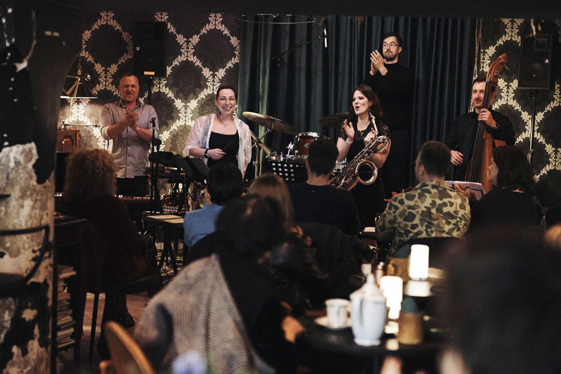 Оснащение: звуковая система, микрофоны, музыкальные инструменты, различные световые решения, экран и проектор, мебель, посуда;