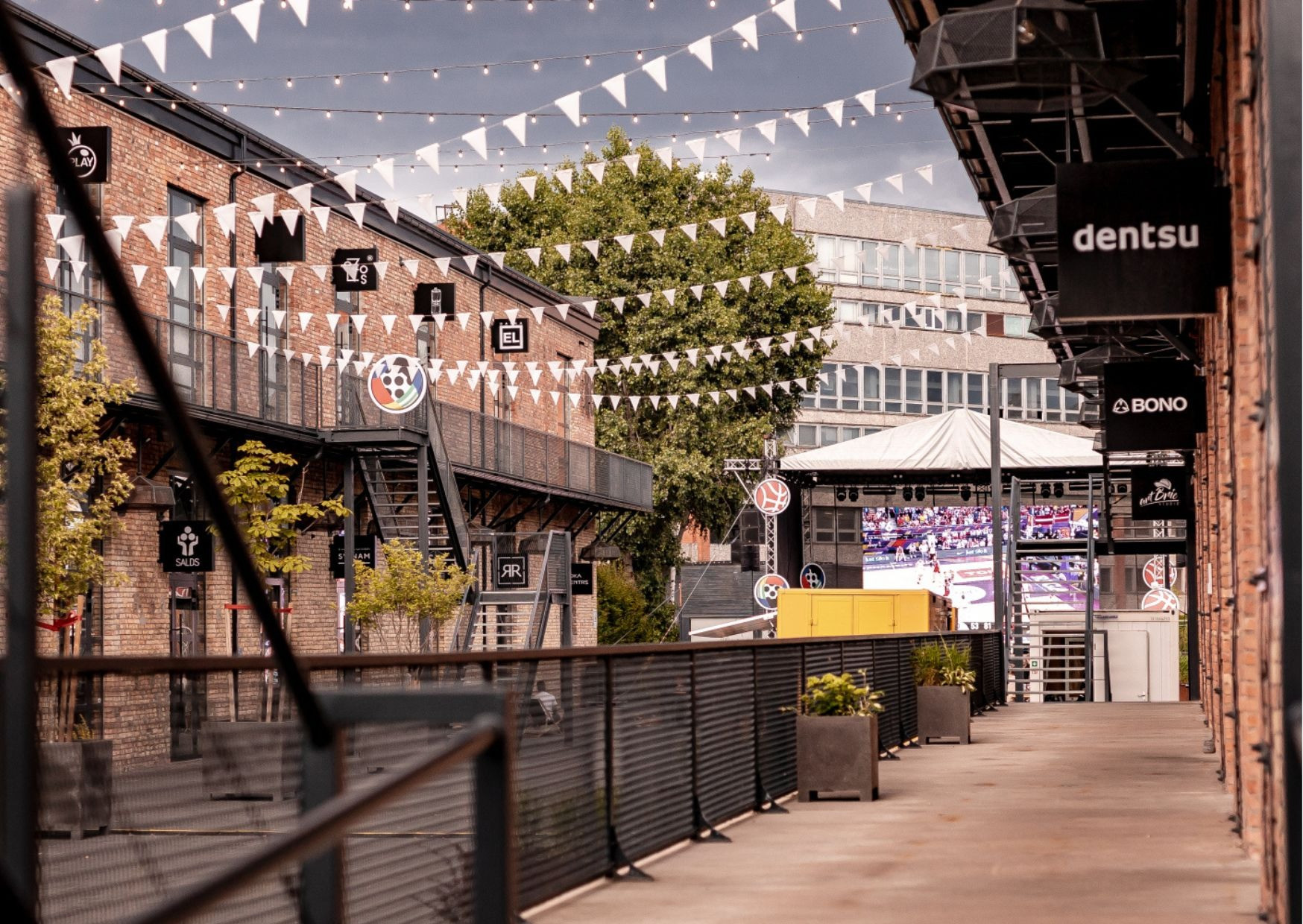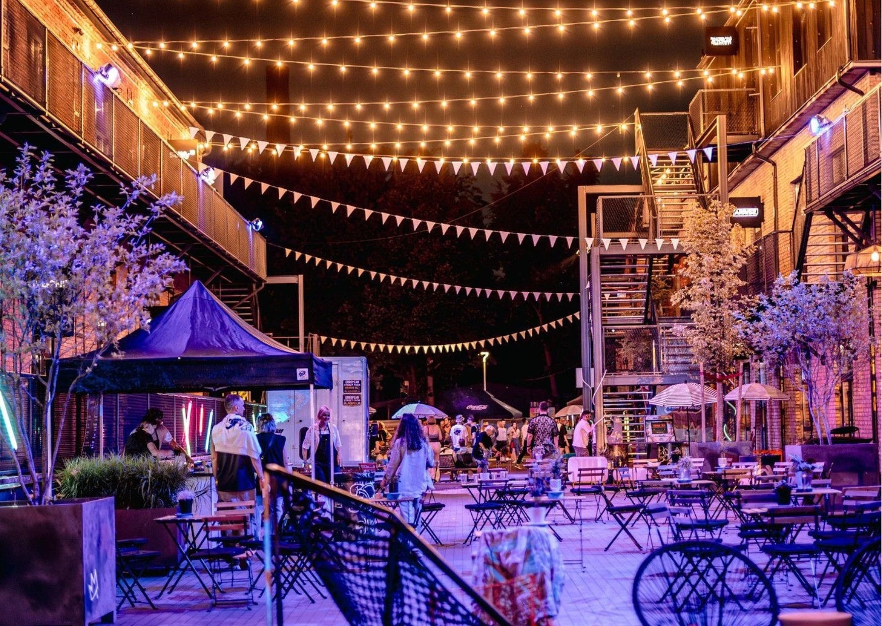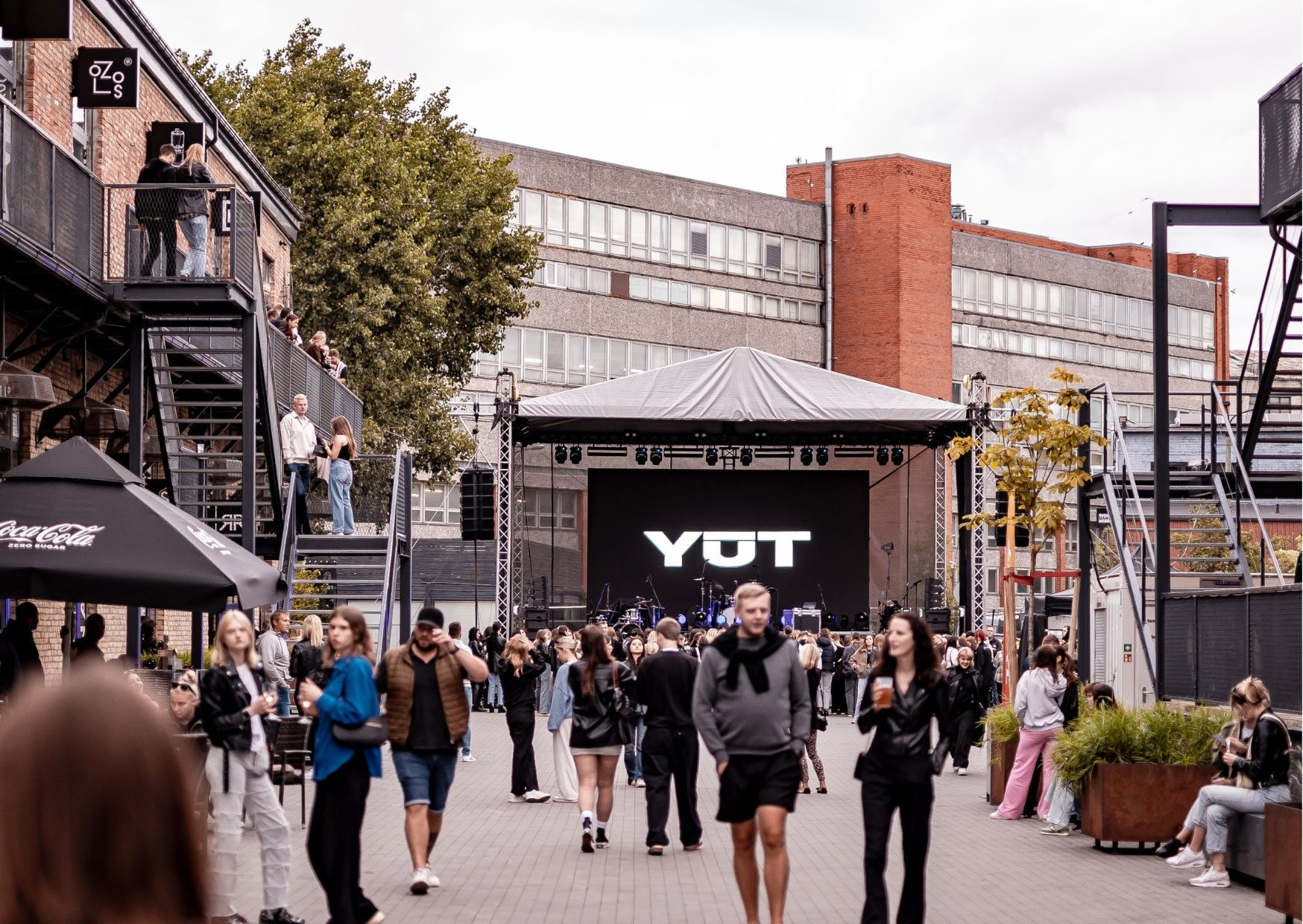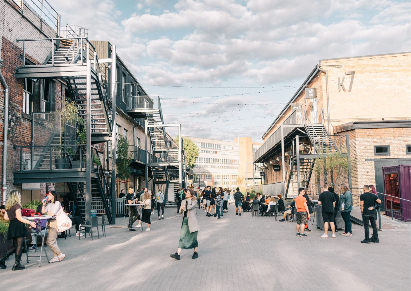 В рамках исторических зданий КВАРТАЛА VEF создана ухоженная прогулочная аллея площадью 3136 м2, идеально подходящая для проведения различных мероприятий под открытым небом, таких как фестивали, концерты, рынки, корпоративные вечеринки и многое другое. Здесь можно организовать как частные, так и публичные мероприятия для аудитории до 4000 человек.
