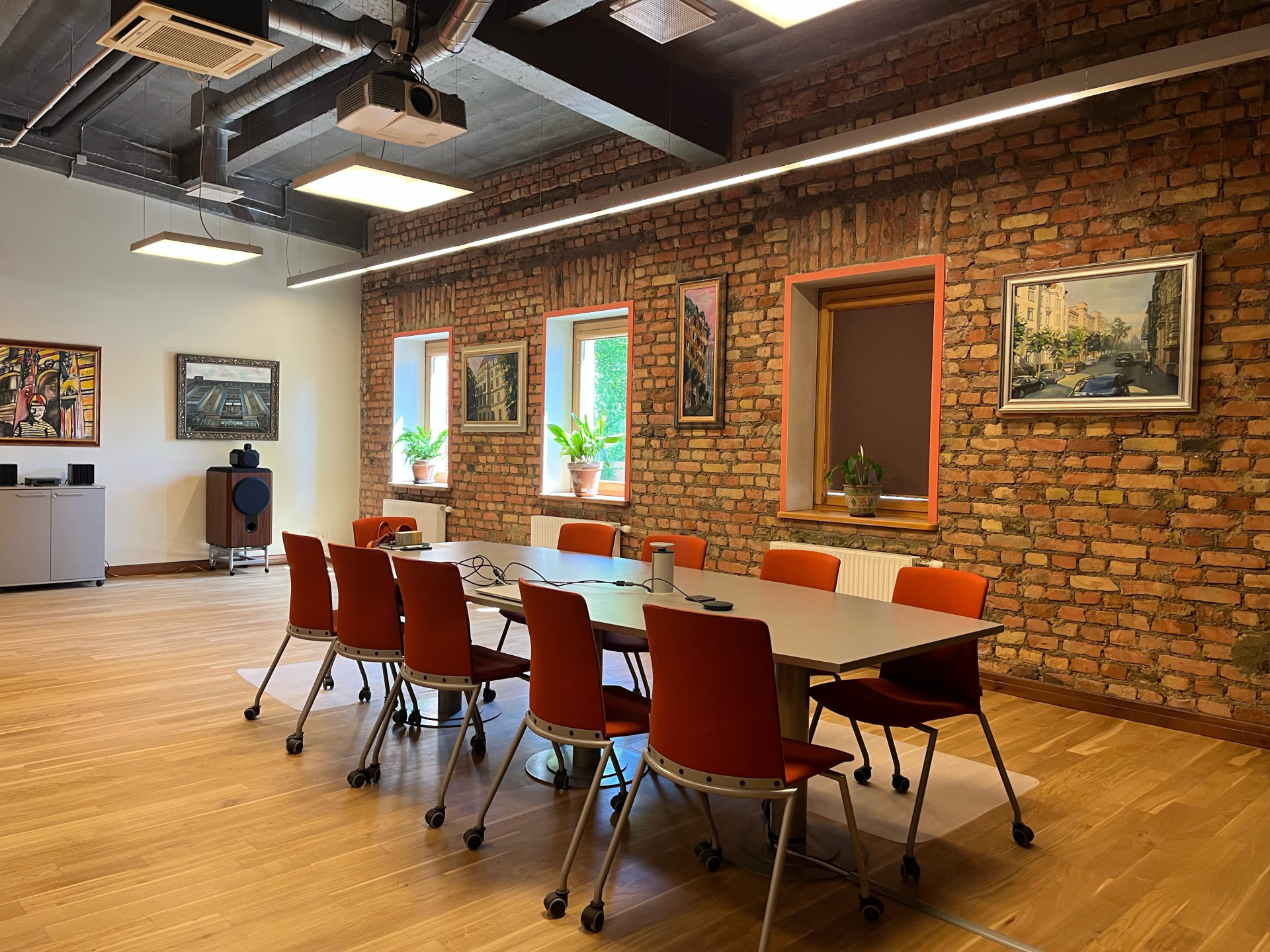 В исторических стенах КВАРТАЛА VEF находятся не только просторные офисные помещения типа Loft и современные места проведения мероприятий, но и современно оборудованный конференц-зал для встреч, совещаний и тренингов.