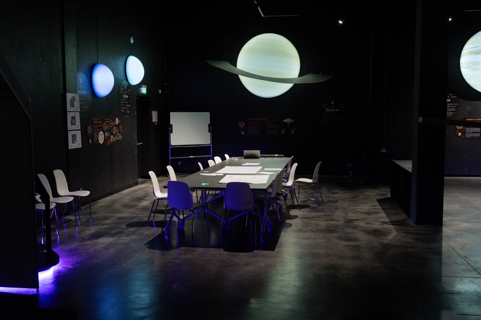 Выставочная зона 3-го этажа — это сердце нашего центра гостеприимства: просторное помещение с высокими потолками и впечатляющим космическим дизайном. Здесь есть возможность установить сцену, освещение и видеопроекцию, создавая атмосферу, которая вдохновляет и выходит за рамки привычного.