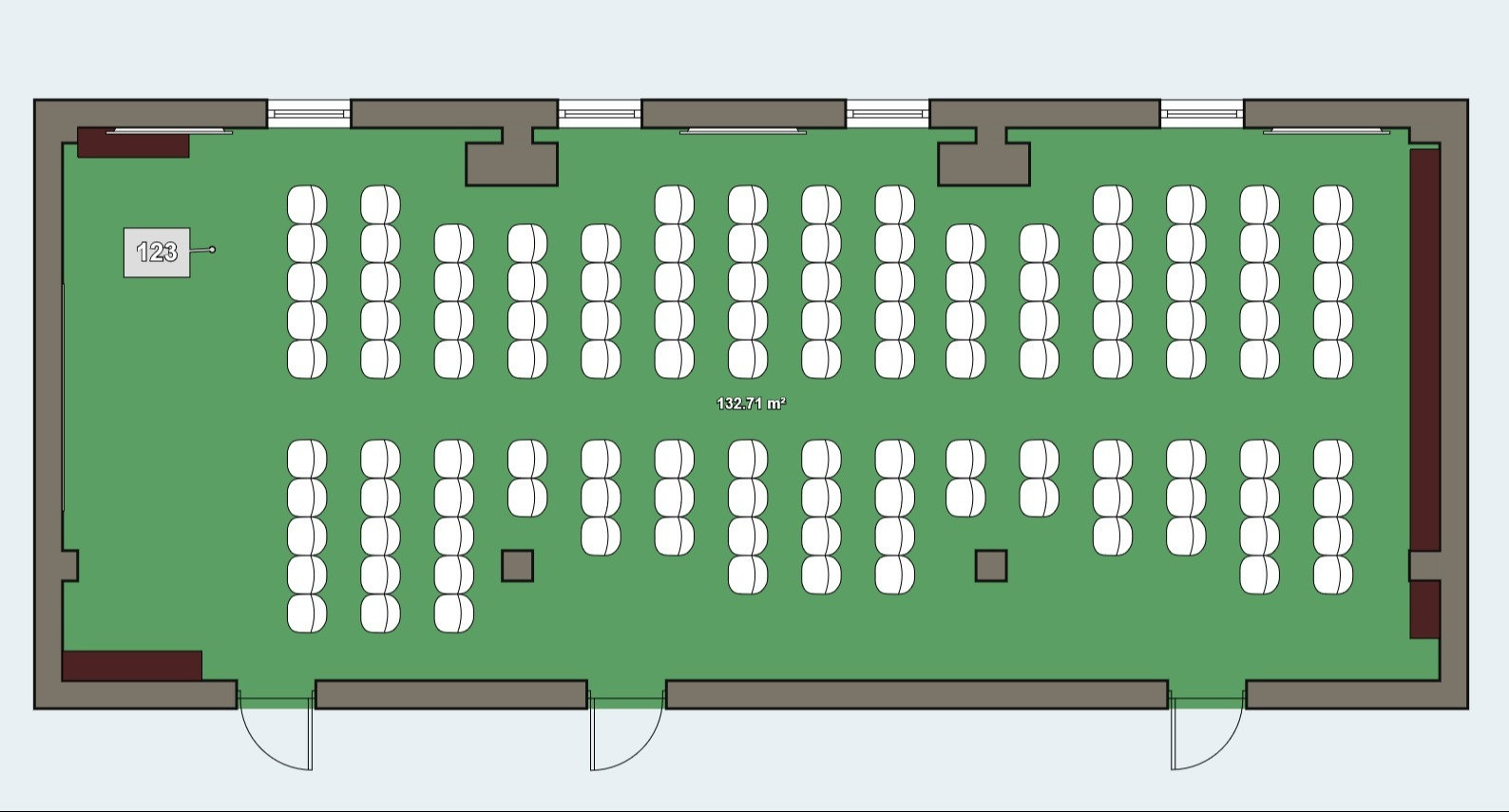 Помещение идеально подходит для проведения крупных конференций, семинаров и корпоративных мероприятий до 123 человек. Просторная и профессиональная обстановка обеспечивает комфорт для большой аудитории.