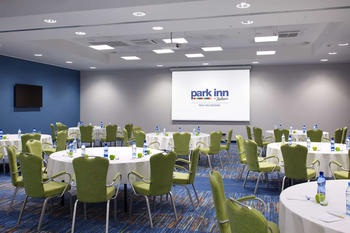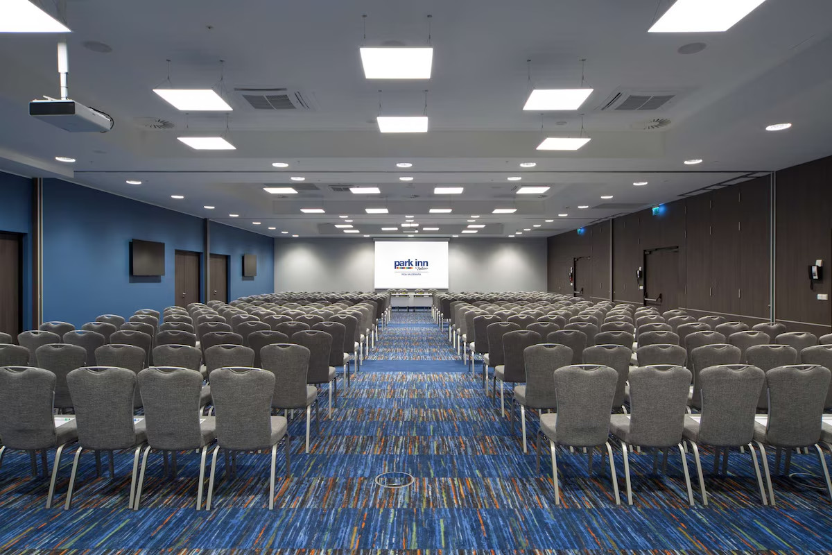 Зал оборудован белой доской, флипчартом, проектором, экраном, звуковым и осветительным оборудованием, бумагой, ручками и бесплатным Wi-Fi для всех участников.